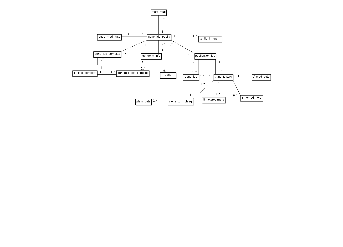 Note: if you want to make use of the database SQL dump, you may need our functions to map k-mers uniquely to and from integers, which is the form in which they are stored in the database. This file will provide you with the algorithm in the form of two different language implementations. Here is a UML diagram illustrating the relationships between the various tables in the database.